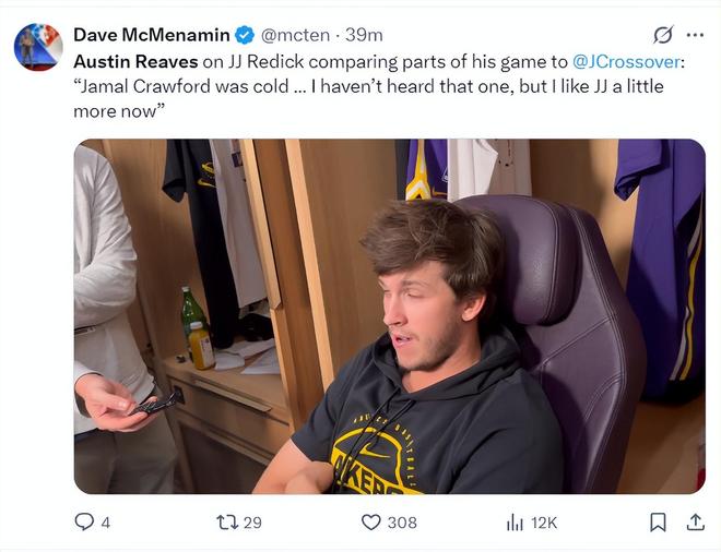 里夫斯目前已经确定会在湖人打先发,他这两场季前赛都非常高效,对阵太阳。21分钟,11中6,三分5中1,罚球7中7,拿到20分3篮板2助攻;对阵勇士23分钟,10中7,三分4中2,罚球6中5拿到21分3篮板3助攻1抢断1盖帽,两场比赛合计41分5助攻。