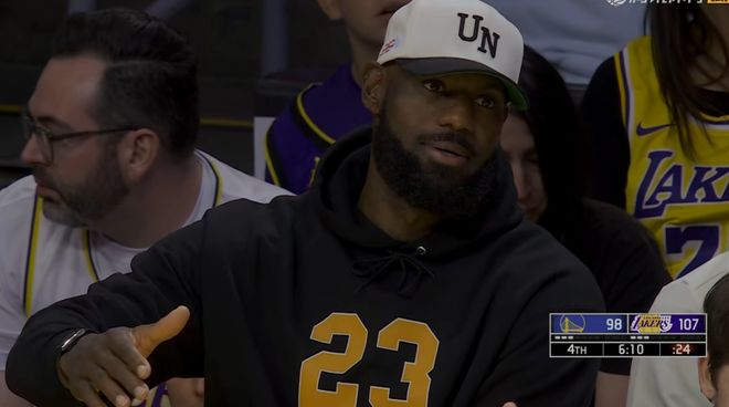 詹皇看球姿势很危险!跷二郎腿或让伤势恶化,