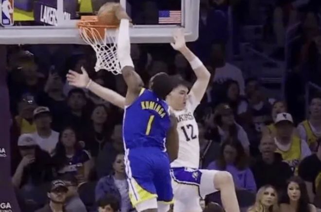 首节比赛,八村塁发挥出色,出战8分钟,5中4,三分2中2砍下10分1篮板1助攻。 次节回来,里夫斯突破连续欧洲步躲过防守,拉杆上反篮打进,库明加防守成功直接发动反击,冲至篮下瞬间暴起左手隔扣拉拉维亚,锁定今日十佳球,身体天赋展露无疑。追梦掩护被吹罚进攻犯规,直接跳起示意科尔挑战,最终成功取消,这次是真被冤枉了。克内克特借掩护果断出手三分被犯规,裁判回看录像后升级为一级恶意,三罚一掷!随后文森特和里夫斯接连走上罚球线,半场结束,湖人以63-46领先勇士多达17分。