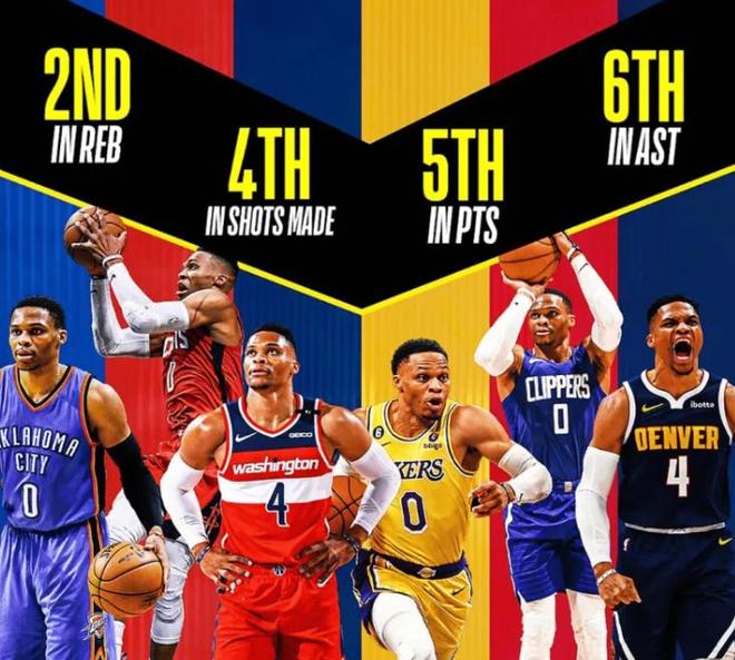 根据数据显示,威少在后卫数据榜中排名很高,分别是26205分,排在历史第五,8677个篮板,排在历史第二,9925个助攻,排在历史第六,Clutch Points说,这样曾经的MVP,9次全明星,依旧还在等待签约电话! 是啊,威少有这样辉煌的历史,关键是他油箱里还有油,就是没有球队签约他,今年夏天,已经有多家媒体为威少摇旗呐喊,尤其是火箭后卫范弗利特受伤后,很多大媒体认为火箭应该签下威少,再续前缘,而且威少和杜兰特还是老队友。