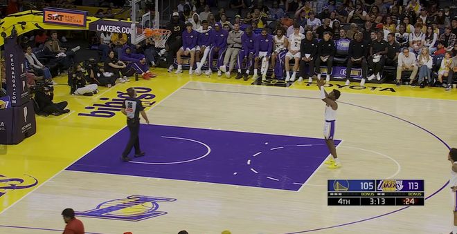 两边都是NBA球队,难道内线的杀伤力真能差这么多?勇士队真的就犯规12次,湖人就这么干净,不管主力和替补都没人犯规吗?而且问题是,湖人队最能造犯规的詹姆斯和东契奇都没上场,勇士的这边起码有一个能突破的库明加。 关键是双方的外线出手数量对比更有意思了,湖人全队出手的三分和勇士的三分出手数在伯仲之间,两边三分出手数只差4个,罚球数却能是15:0的差距,难道勇士真的只飘在外面打吗?显然不是,三节之后,双方三分出手对比是30-24,勇士只多出手了6次三分。