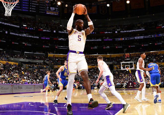 里夫斯第三节中段膝盖被撞不适被换下场,东契奇场下让里夫斯不要再登场了。 比赛回顾 前两场季前赛,勇士连续战胜湖人与开拓者收获2连胜,湖人连续输给太阳与勇士遭遇2连败。本场湖人缺少詹姆斯与东契奇、斯马特,勇士缺少库里与巴特勒。首节开局,里夫斯中投与三分连得5分,勇士一波6-2攻势追分,八村垒与波斯特对攻一记三分。双方接连冲击内线维持13-13,八村垒三分命中,追梦上篮追分,艾顿补篮与八村垒上篮扩大5分优势。波杰姆斯基三分追分,湖人一波10-2攻势扩大10分优势,勇士连追4分,首节结束湖人30-24领先勇士。首节勇士三分11中2,湖人三分9中4,八村垒5中4得到10分,艾顿3中3得到6+4+2+1。