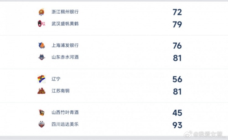 【锦标赛第二阶段第六日综述:江苏、四川小组赛全胜 明日1/4决赛火热开战】今日,全国女篮锦标赛第二阶段(四川宜宾高县赛区和南溪赛区)两个赛区继续同时开战,高县赛区小组赛收官,明天将进行1/4决赛。南溪赛区新疆将与江西争夺第九名。其中,武汉在丁奕可带领下7分险胜浙江。上海与山东战况激烈,两队各有5名球员得分上双,最终山东5分险胜。合肥最后1分半陷入得分荒,北京队在末节成功逆转合肥。(明日详细赛程见P1、P2) 【高县赛区】 浙江稠州银行72-79武汉盛帆黄鹤,丁奕可22分,李宜桦12分7抢断,彭华倩12分。浙江队张宇新空砍21分5篮板,周琪15分,张敏14分。 上海浦发银行76-81山东赤水河酒,山东队赵雅琢18分,张婧16分,周静14分,邹广凤13分7篮板,隋文萍10分。上海队刘禹彤16分8篮板,王樱霓12分6篮板,黄靖12分5篮板,伍湘琳10分,刘露10分8篮板。 辽宁56-81江苏南钢,罗欣棫19分5篮板,许晨妍18分12篮板拿到两双。辽宁队仅吴爽得分上双获得14分。 山西竹叶青酒女篮45-93四川远达美乐,唐子婷17分10篮板,唐晨萌15分,王思雨12分。山西队李海娜9分7篮板。 【南溪赛区】 新疆天山68-62东莞新彤盛,周昕凡22分7篮板,吴熠璠13分6篮板,蔡晓渝12分5篮板,热苏拉11分6篮板。东莞队张玮玮23分5篮板,杨蕊14分。 厦门白鹭66-93赣州赣星,曹茵棋16分,许艳雪15分9篮板,张瀞丹13分,陆雅琪12分5篮板。厦门队赵莉芝19分7篮板,廖丽华13分11篮板,赖一丹11分,郑馨茹10分。 陕西天泽56-63河南豫光金铅,邓睿洁18分,刘文雯12分6篮板,张莹晓11分。陕西队刘晓薇18分,闵艳15分11篮板,张艺凡10分9篮板,王思文10分。 合肥文旅62-65北京首钢,刘晶17分6篮板,孟伊心15分,豆中秋13分10篮板,徐凤威10分。合肥队熊中怡25分5篮板,王泽15分7篮板,林佳蓉13分4篮板。