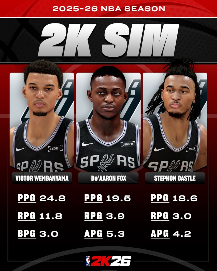 2K模拟数据:文班24.8分11.8板3封盖 福克斯19.5分 时间: 2025-10-15 来源: 网络 作者: admin 文班亚马:24.8分11.8篮板3.0封盖;福克斯:19.5分3.9篮板5.3助攻;卡斯尔:18.6分3.0篮板4.2助攻。 上一篇:范弗里特:很多球队是努力培养化学反应 我们是 下一篇:妥妥人生赢家!福克斯晒生活照 妻子貌美如花
