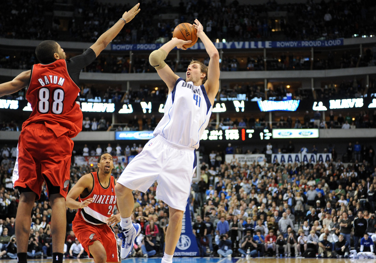 累计得分(赢球):23,224 分 赢球场均得分:24.50 分/场 职业生涯场均得分:23.78 分/场 历史得分榜第9 7. 诺维茨基