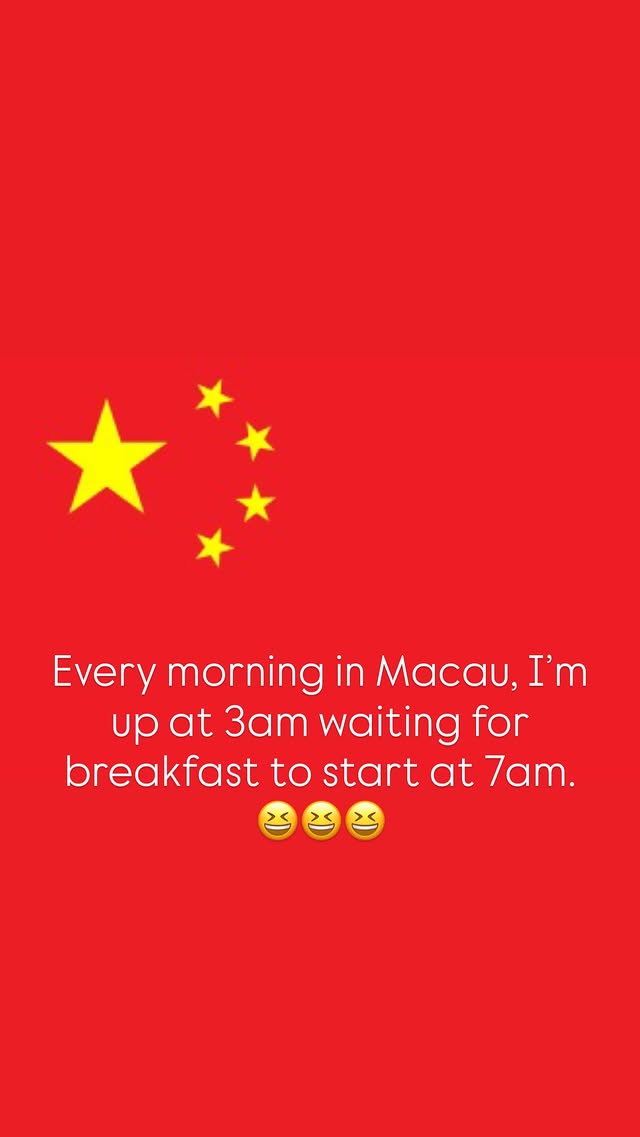 足球比分网10月10日讯 菲尼克斯太阳赴中国澳门打NBA季前赛,杰伦-格林的40岁网红&演员女友Draya Michele一同来到了中国。 老baby今日在社媒晒出了在中国香港和澳门吃吃喝喝玩玩的多个视频,并表示这里太好吃了,在中国澳门每天凌晨3点起床等待7点开饭。