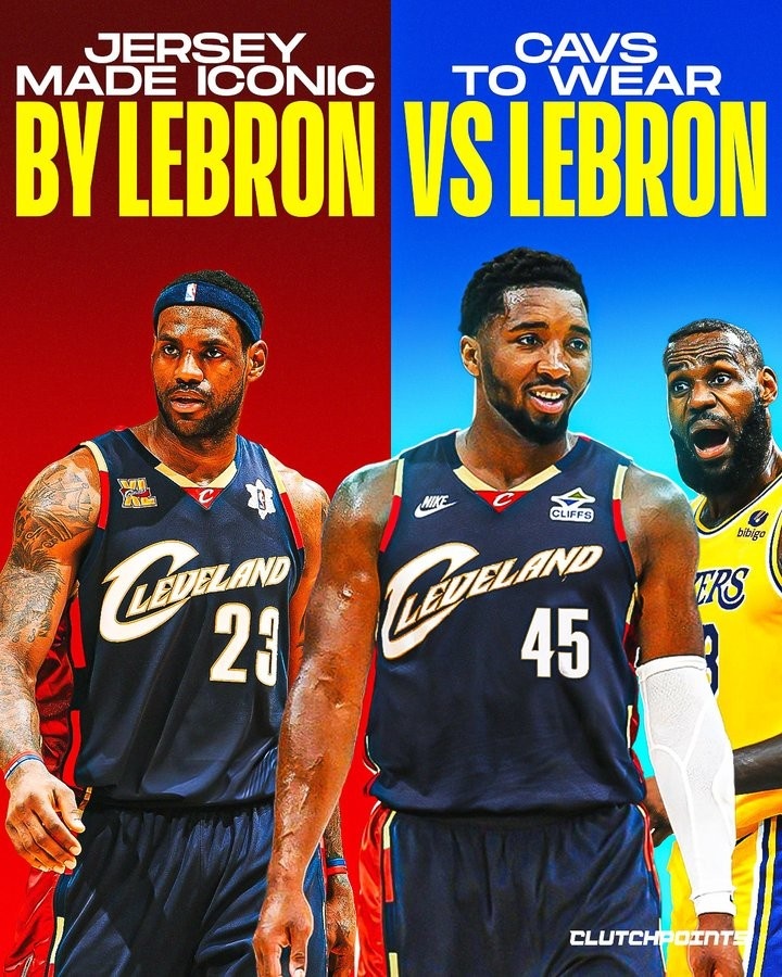 足球比分网10月16日讯 此前,骑士揭晓了球队新赛季经典版球衣,是詹姆斯1.0时期的海军蓝配色,这个赛季,他们将在包括圣诞大战在内的八个主场比赛和三个客场比赛中穿上这套球衣。 据美媒ClutchPoints报道,这八个主场比赛中就有1月29日(北京时间)主场迎战湖人的比赛,届时骑士将穿着詹姆斯穿过的这件球衣对阵老詹。