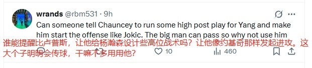 小杨打服美网友:他是中国约基奇!开拓者未来