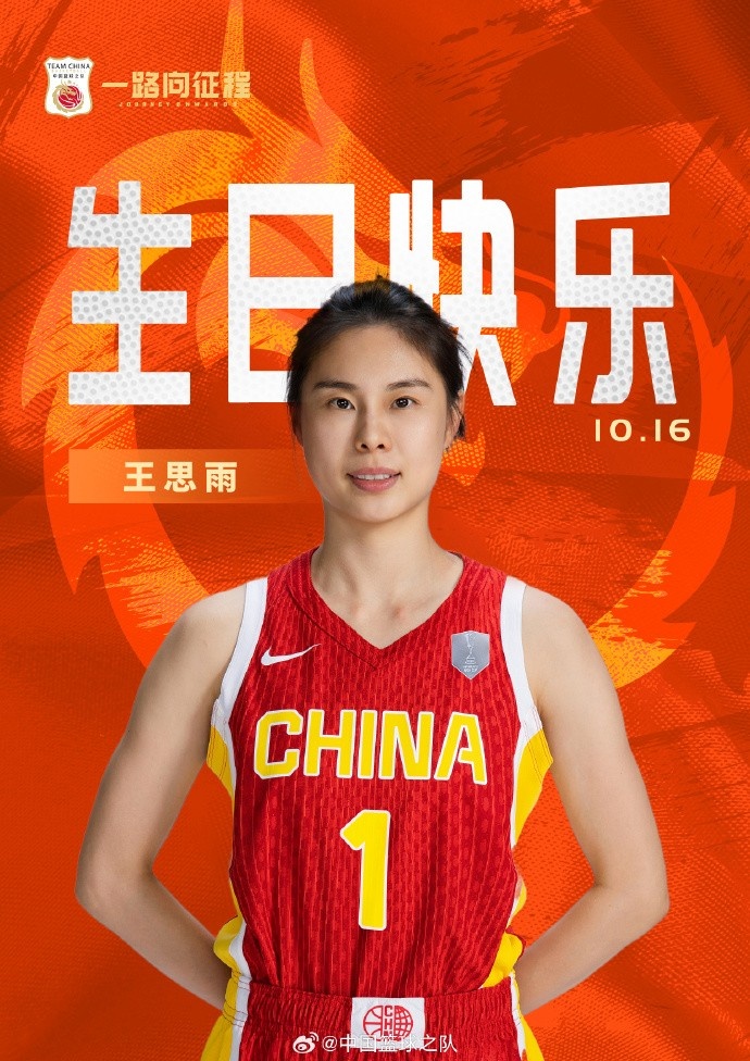 中国篮球之队官博祝王思雨生快:以坚毅定格高