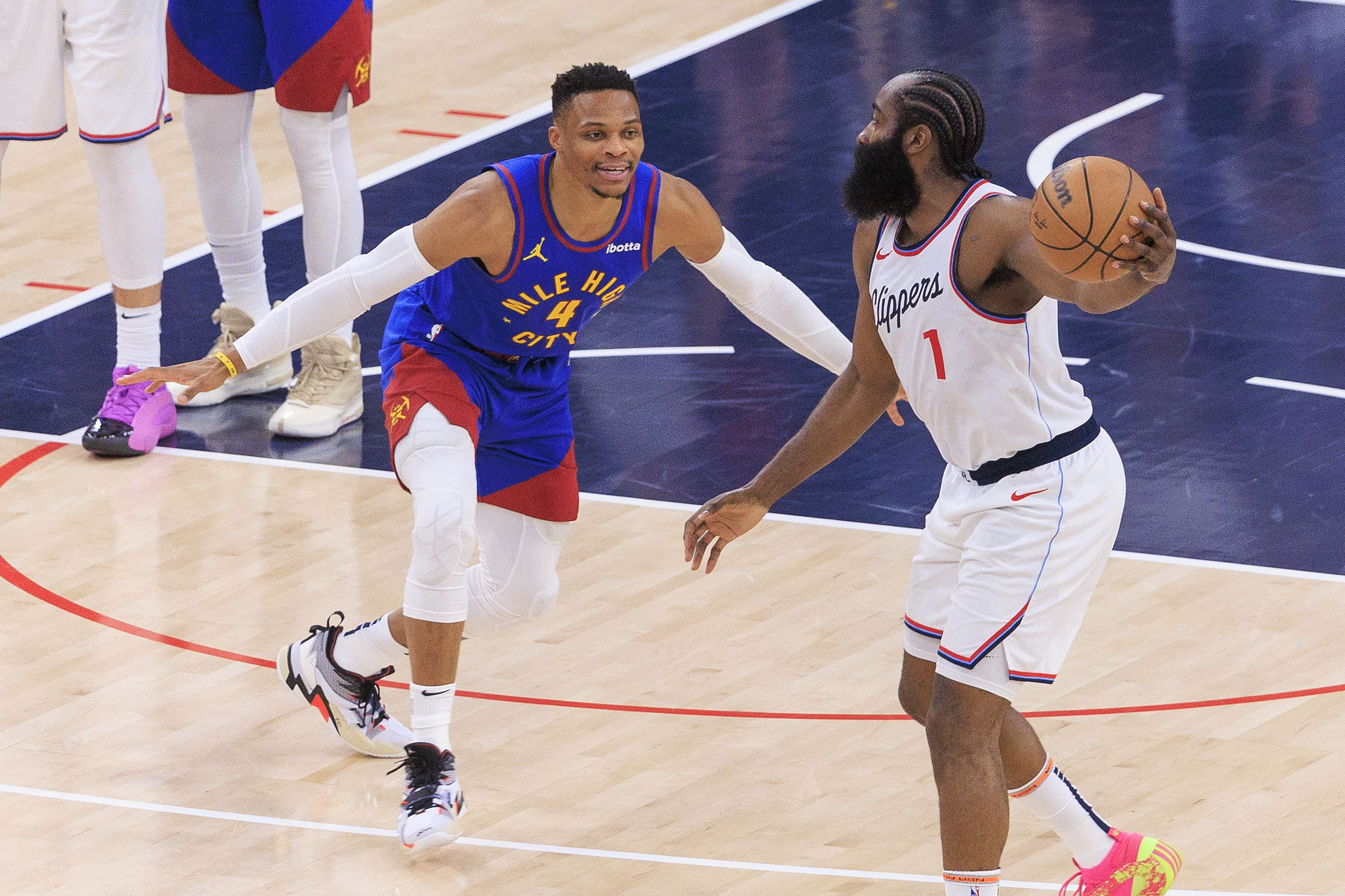 威少的油箱还有油,他是掘金今年季后赛首轮抢七击败快船的重要功臣。 威少在掘金打出了一个精彩的赛季:常规赛场均出战27.9分钟,场均贡献13.3分4.9篮板6.1助攻1.4抢断,三分球命中率达到了近7年新高的32.3%(1.3/3.9);季后赛场均出战24.1分钟,场均得到11.7分3.7篮板2.6助攻0.9抢断,三分球命中率31.7%(1.5/4.8)——年度第六人评选连续两年位列第7,他担任一个场均25分钟左右的替补绰绰有余。 今年季后赛首轮掘金VS快船系列赛,威少场均贡献13.8分4.8篮板2.8助攻,三分球命中率达到了41.9%,场均出手5.2记三分、命中2.2记三分,毫不夸张,“威少投死了快船”。 掘金上季充分发挥了威少的特点,他和约老师的挡拆颇具威胁,不同于传统的后卫持球,掘金用约老师持球、威少给约老师做掩护墙,最大程度实现了扬长避短。 威少在这个年纪的持球冲击力、组织、防守热情依旧在线,能在二阵容当持球手,最大的短板确实是投射不稳定,这也严重耽误了他在当今小球投射时代找下家的进度——尤其三分能力不好,现在NBA再就业很看重这项技能。 布鲁斯-布朗1年合同回归掘金,这位2023年冠军功臣上季三分球命中率达到了40.4%,他的空间价值显然更适配约老师。穆雷和布劳恩又要吃掉大量1、2号位的时间,掘金有了投射能力更好的布朗,威少原本的戏份自然被取代了。