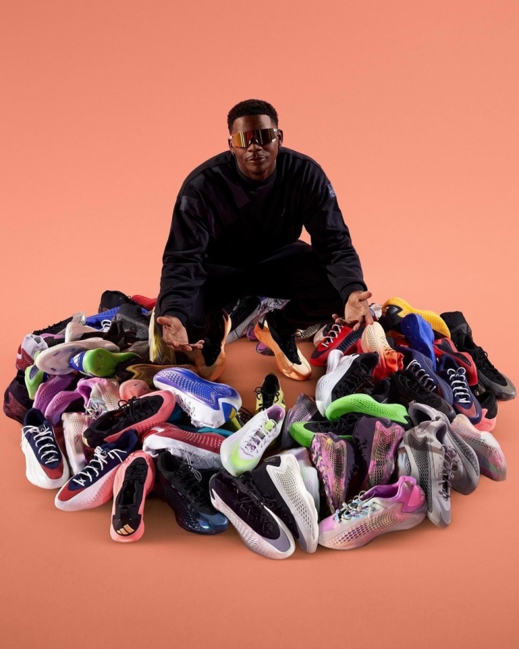 足球比分网10月16日讯 球鞋媒体soleretriever更新动态,晒出了一个爱德华兹和好基友们一同拍摄的一个搞怪视频。 视频中,华子正要评选年度最佳球鞋,他的的好基友则一本正经的介绍起了候选的球鞋名单,结果拿出来的全是各种配色的AE 1,结果自然也就不意外了,华子的第一代签名鞋AE 1当选了年度最佳球鞋。