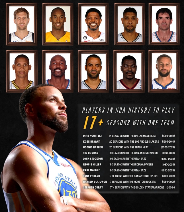 忠诚!库里即将成为历史第10位为“一支球队”效