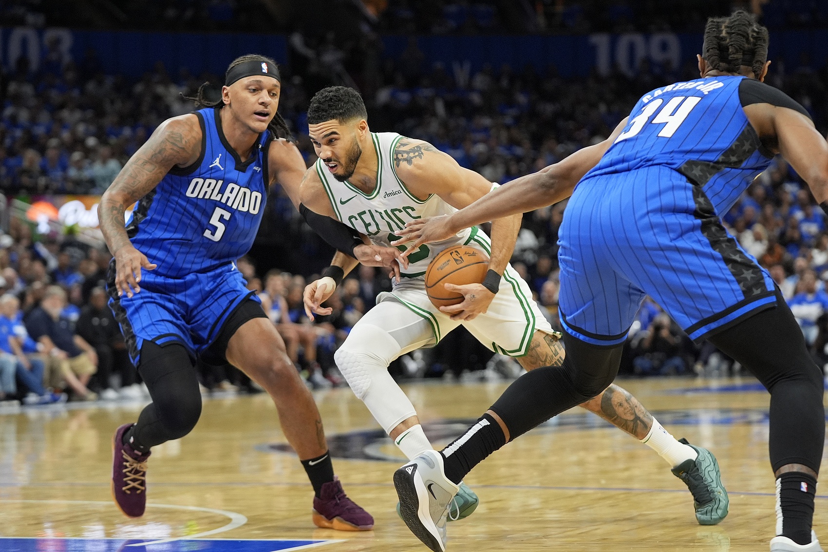 新赛季倒计时5天,回顾上赛季,如何评价连续两年打进季后赛的魔术青年军? 魔术自2020年首轮1-4不敌雄鹿后开启重建,送走阿隆-戈登、武切维奇、富尼耶这批人,2020-23赛季进行了三年摆烂重建:2021年第5顺位选中萨格斯、第8顺位选中小瓦格纳,2022年状元签选中班凯罗,23年第6顺位选中安东尼-布莱克、11顺位选中杰特-霍华德——通过选秀囤积天赋,打造出了重建核心班底。 2023-24赛季,魔术防守效率高居联盟第2,班凯罗成长为全明星前锋,魔术取得了47胜35负排在东部第五,自2020年后重返季后赛,遗憾首轮抢七不敌骑士。 上赛季开始前,魔术续约了小瓦格纳、卡特、比塔泽、大瓦格纳、艾萨克等人,基本保留了47胜原班人马,还引进了冠军3D后卫波普,保持着联盟第二好的防守效率,按理说战绩应该有进步,但最终只取得了41胜41负排在东部第7。 魔术上季战绩未达预期的关键原因在于核心伤病,班凯罗仅出战46场、小瓦格纳60场、萨格斯35场,三大核心都遭遇了伤病且至少缺席了20场——在核心长期缺阵的情况下,魔术只比上赛季少赢了6场球,其实整体表现可圈可点。 魔术上季防守效率第2、进攻效率第27、场均三分球出手数和命中数皆排在倒数第1,依然没能改善贫攻贫射的问题,季后赛首轮1-4不敌绿军。 若非三大核心伤病,魔术的常规赛战绩能更好,守强攻弱的特点也制约了球队的季后赛竞争力,这也为魔术今年的休赛期工作指明了方向。