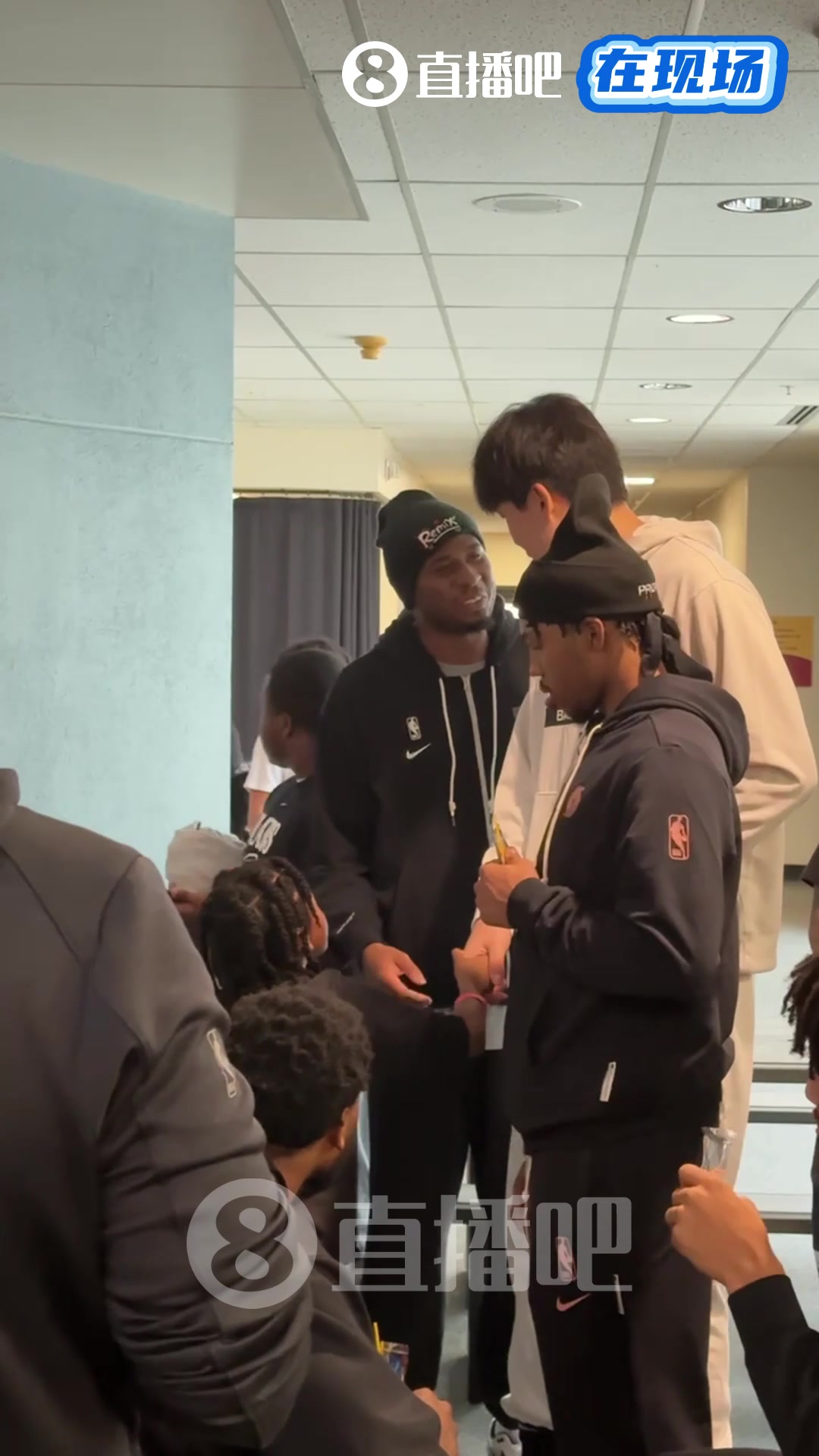 开拓者今日全队参与社区活动,小吧也来到了现场,发现杨瀚森真的很招小球迷们的喜爱。很多小孩子围着杨瀚森转,小杨笑得也很开心。