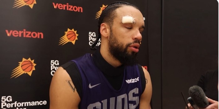 足球比分网10月19日讯 今天,太阳球员狄龙-布鲁克斯在训练结束后接受了采访。 谈及当地时间周五的训练,狄龙表示:“训练里被一个队友用肘部撞到了额头。” 此次受伤让他缝了6针,但他并未透露撞到自己的队友是谁。
