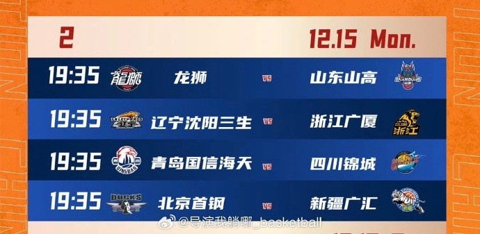 足球比分网10月20日讯 CBA官方公布了新赛季的赛程,常规赛共42轮。 媒体人导演我躺哪列出了一些焦点大战的赛程:辽宁男篮首个主场面对浙江广厦,跨年大战张镇麟首次回到辽宁队主场,元旦大战赵睿携手周琦面对老东家广东宏远 。
