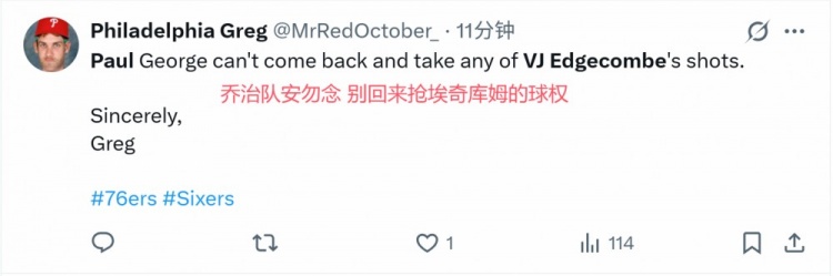 美网友:乔治队安勿念 埃奇库姆是下一个詹姆斯 时间: 2025-10-23 来源: 网络 作者: admin 上一篇:1月复出!李月汝自宣退出全运会 并确认将参加三 下一篇:鲍威尔热火首秀砍下28分 创队史2010年詹姆斯以来
