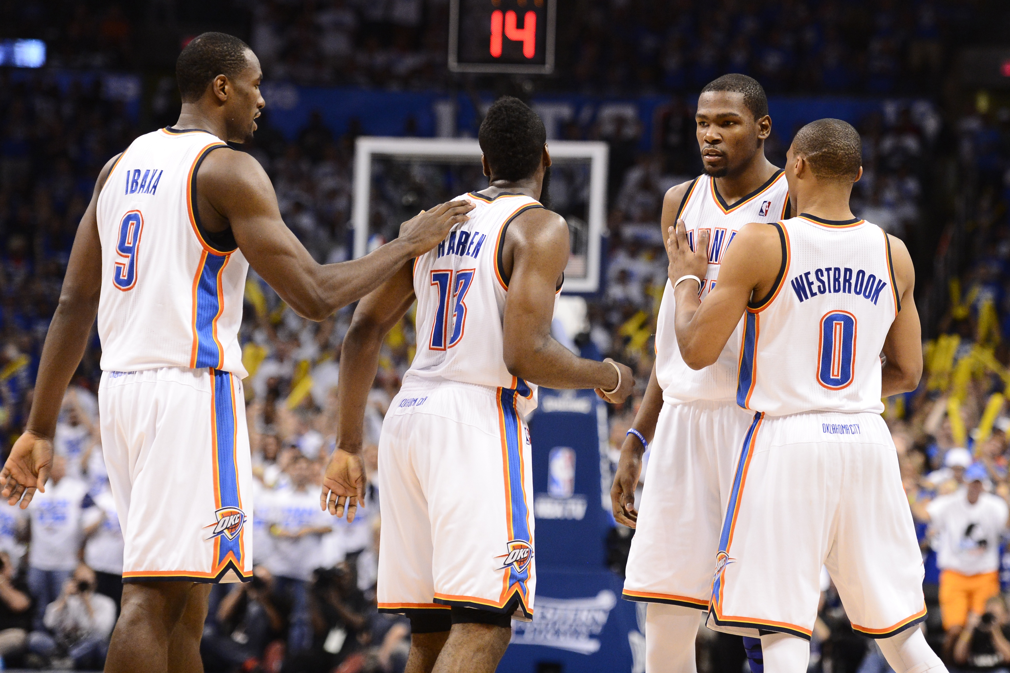 足球比分网10月22日讯 今天NBA常规赛揭幕战,雷霆125-124战胜火箭。 评论员雷吉-米勒在解说中说道:“威斯布鲁克的球衣应该在这里退役。杜兰特——我知道这很有争议——也应该在这里退役。我认为伊巴卡的球衣值得在这里退役。哈登同样配得上这份荣誉。”