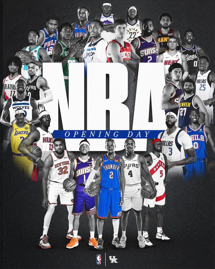 足球比分网10月22日讯 肯塔基男篮官方社媒更新动态,晒出了现役NBA校友海报。并自豪的写道:“NBA新赛季开始了,NBA各队揭幕战名单中共有27位肯塔基校友,这在全美各校中排名第一,而且我们已经连续14年占据榜首。” 详细名单: 亚历山大、浓眉、马克西、布克、福克斯、奎克利、唐斯、兰德尔、阿德巴约、贾马尔-穆雷、PJ-华盛顿、希罗、蒙克、谢泼德、迪林汉姆、卡森-华莱士、夏普、凯尔登-约翰逊、范德比尔特、科比-布雷亚、雅各布-托平、尼克-理查兹、以赛亚-杰克逊、奥斯卡-希布韦、阿马里-威廉姆斯、贾斯汀-爱德华兹、安东尼奥-里夫斯。