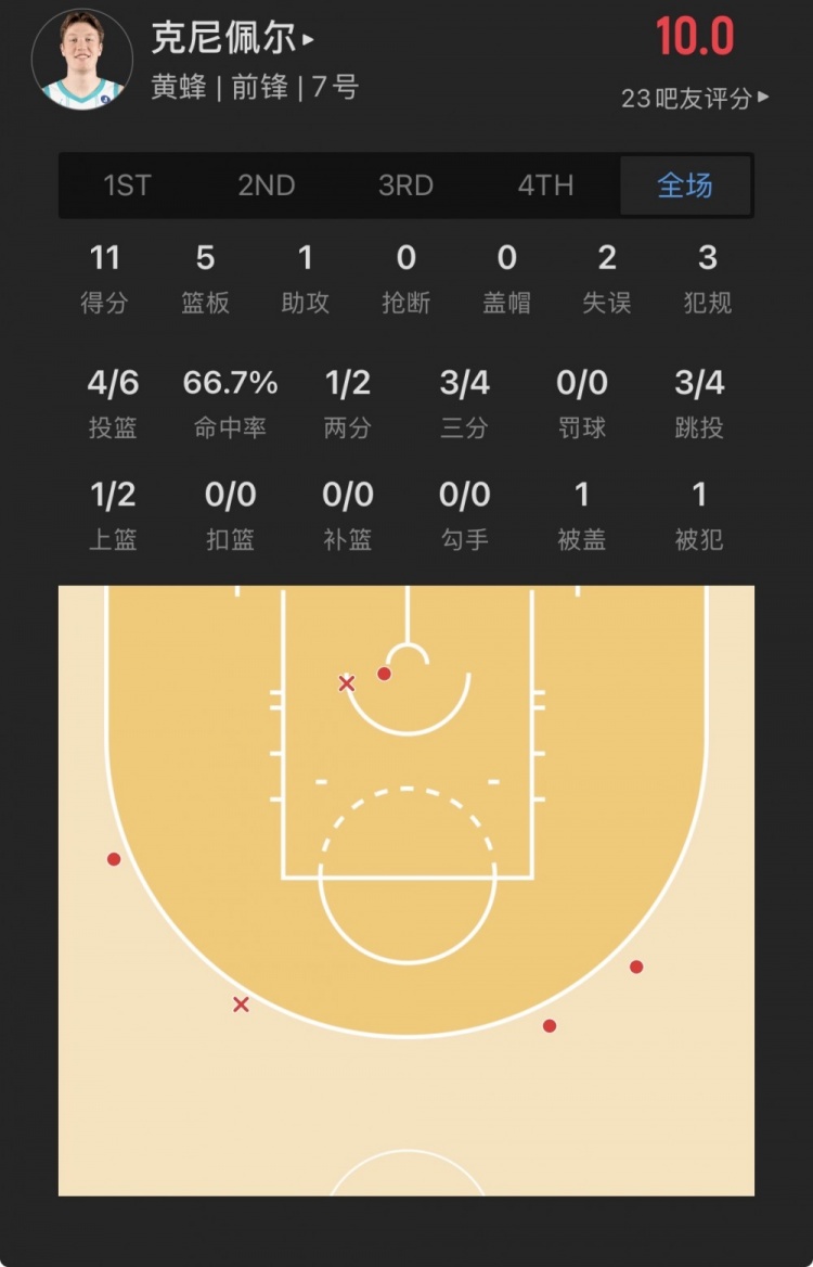黄蜂4号秀 康-克尼佩尔 登场25.5分钟
