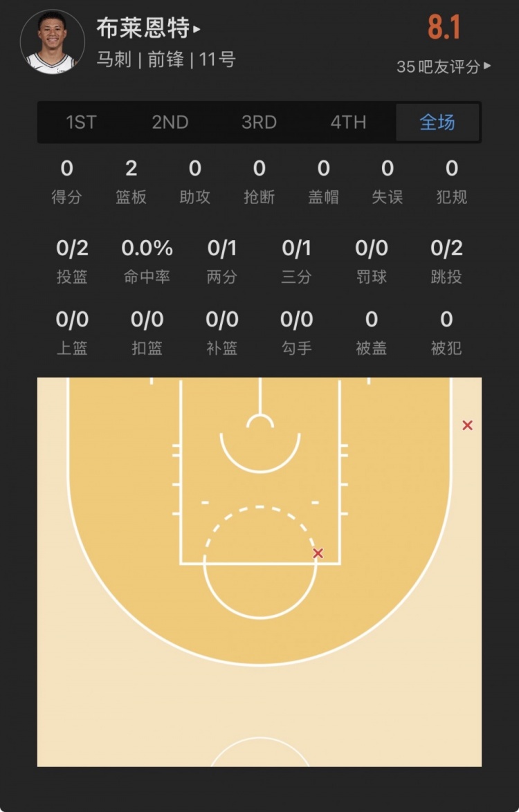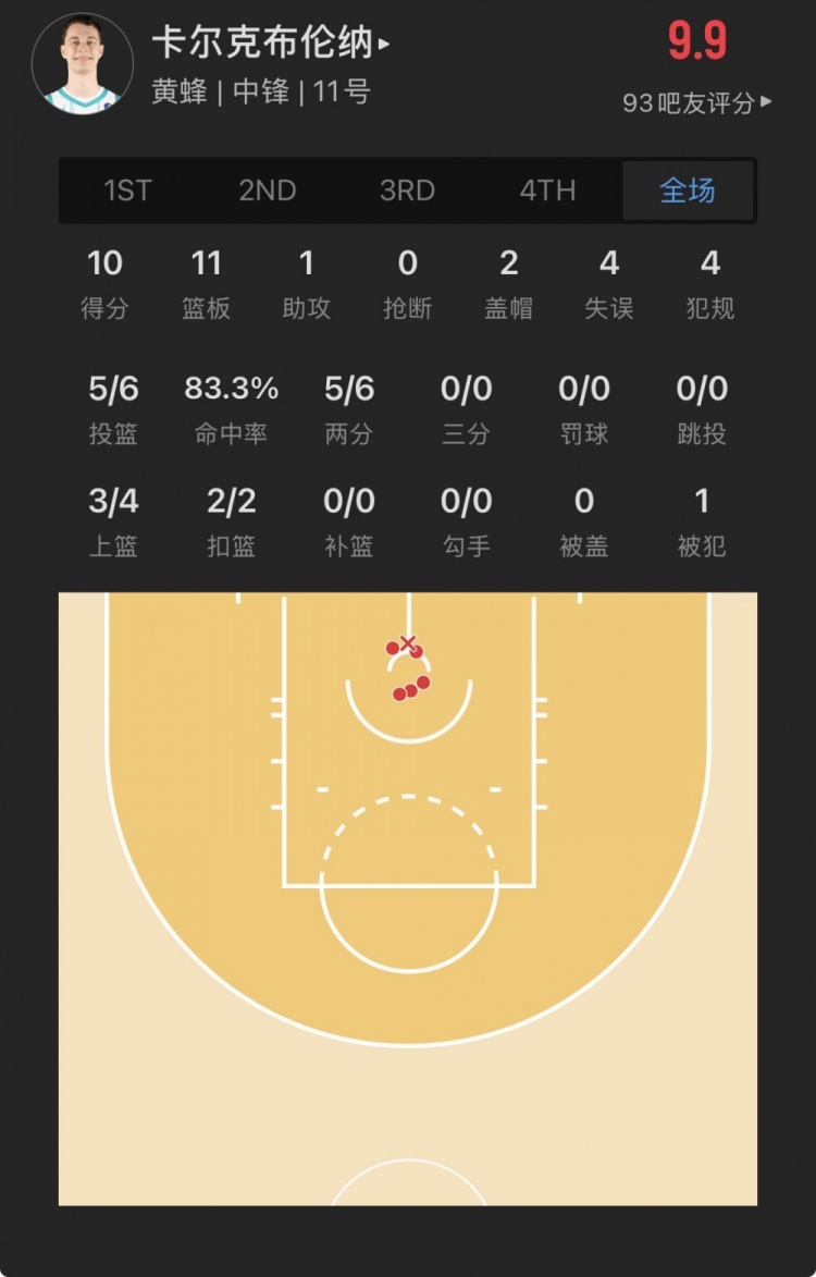 黄蜂34号秀 瑞安-卡尔克布伦纳 登场26.8分钟