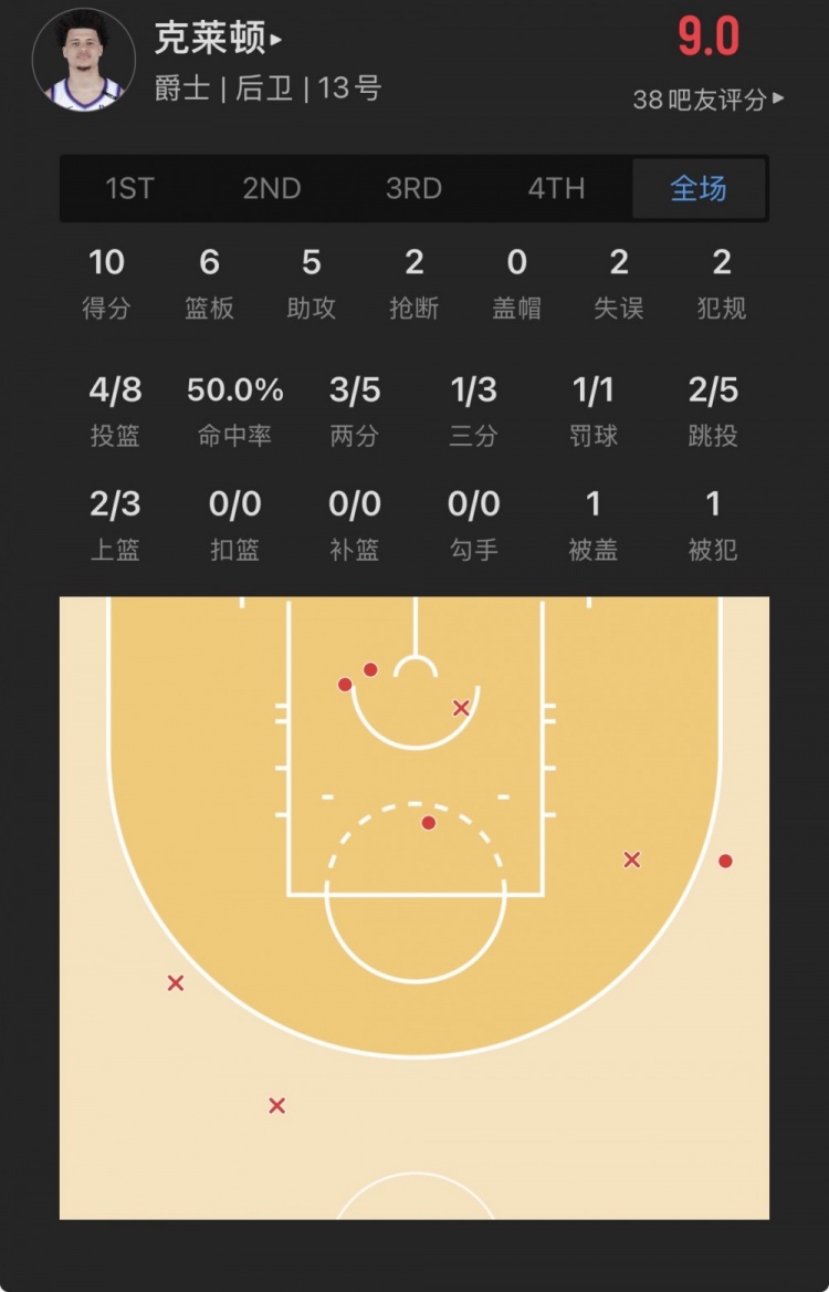 爵士18号秀 小沃尔特-克莱顿 登场18.1分钟