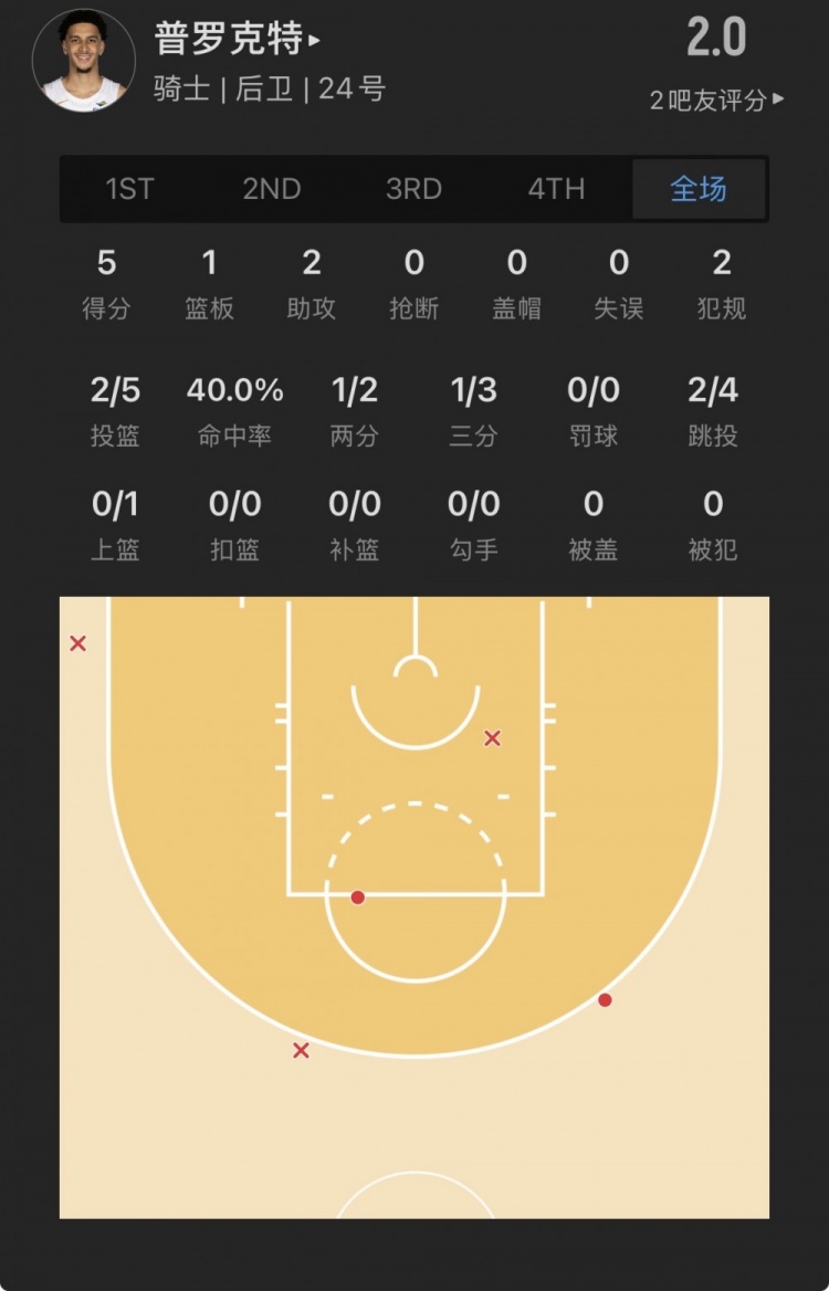 骑士49号秀 泰瑞斯-普罗克特 登场16.1分钟