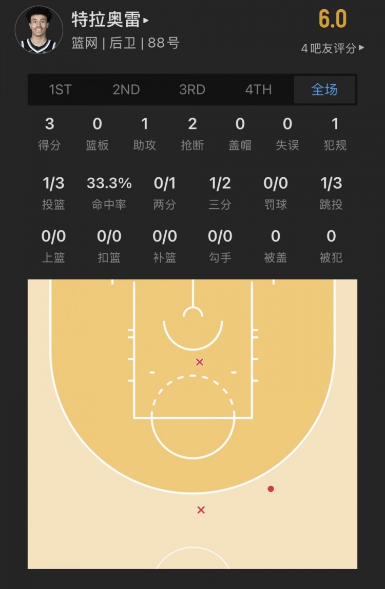 篮网19号秀 诺朗-特拉奥雷 登场8.9分钟