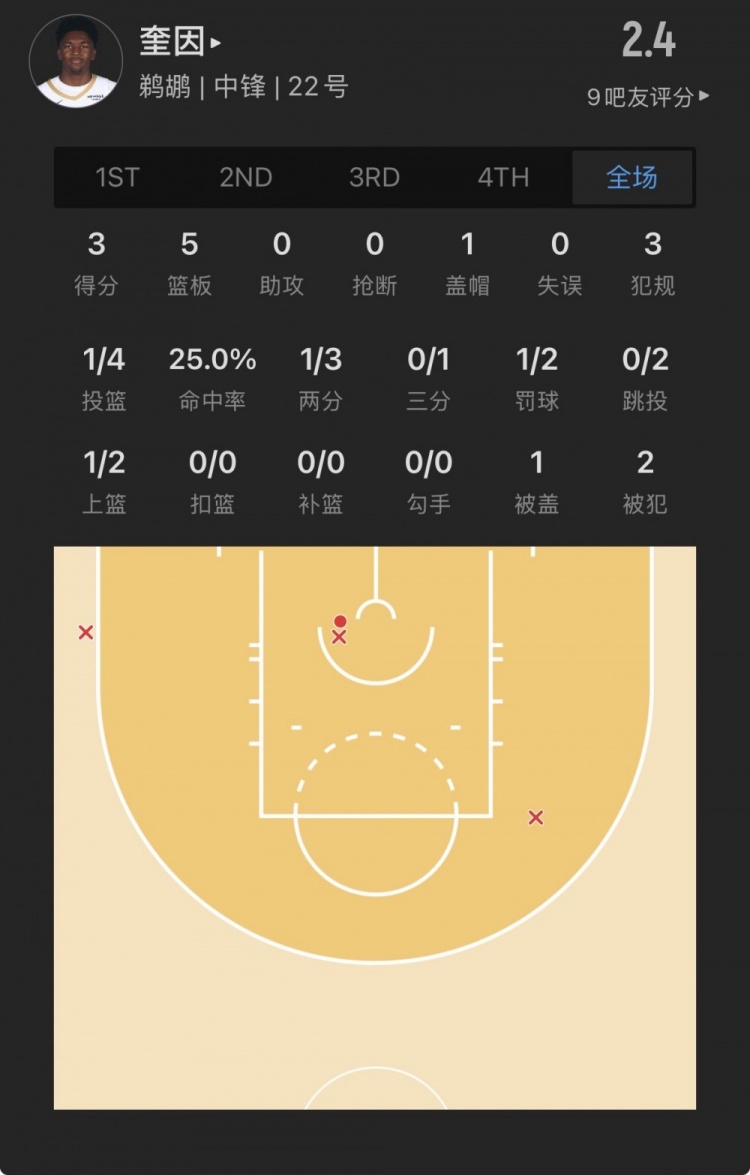 鹈鹕13号秀 德里克-奎因 登场14.5分钟