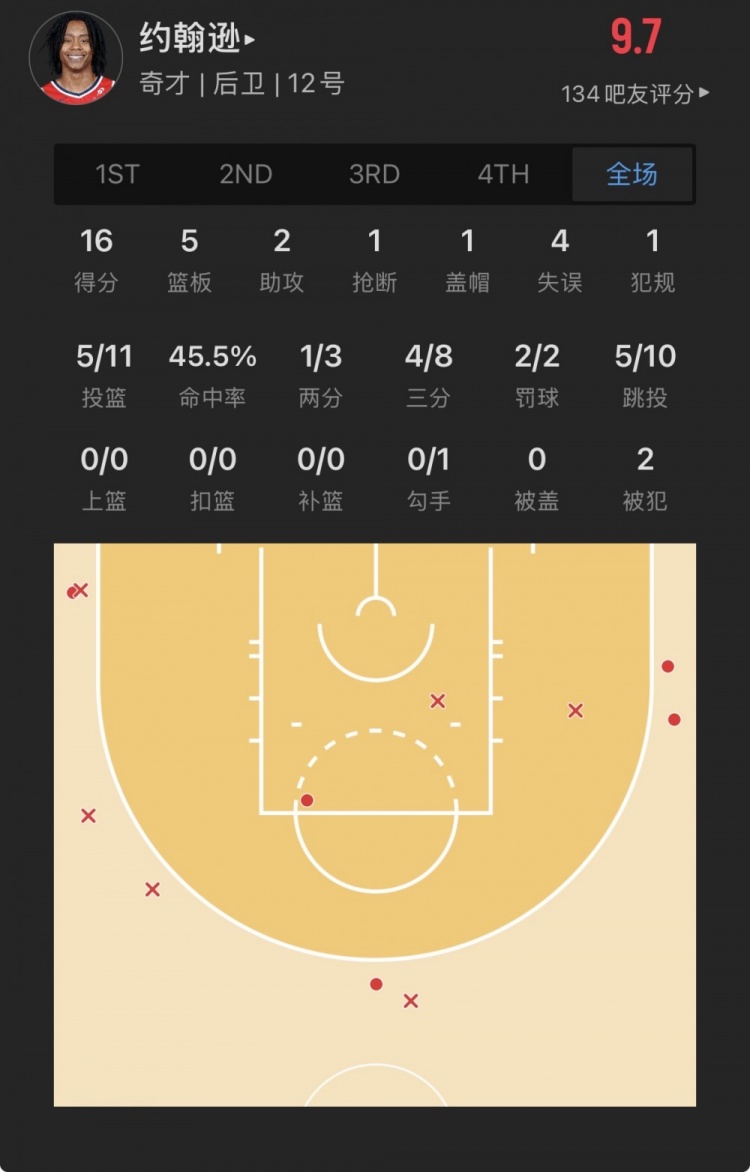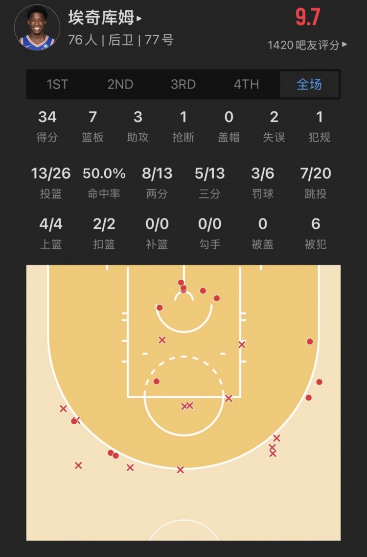 76人探花秀 VJ-埃奇库姆 登场42.2分钟