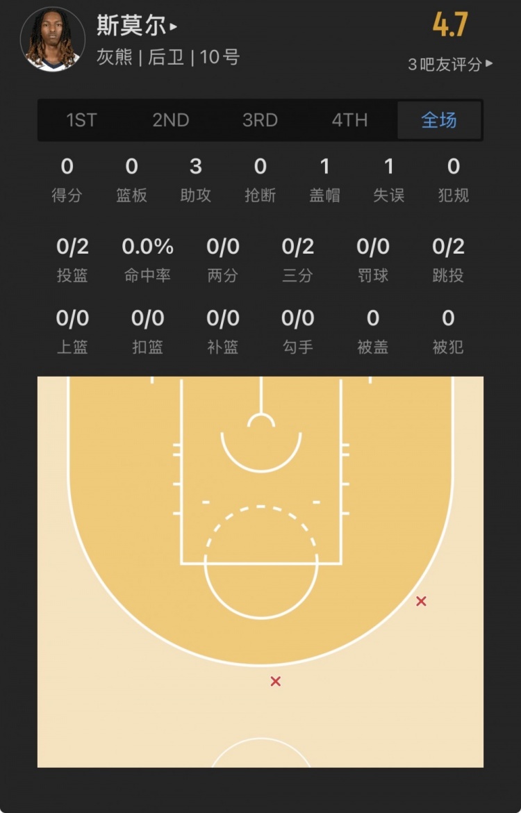 灰熊48号秀 贾冯-斯莫尔 登场19.3分钟