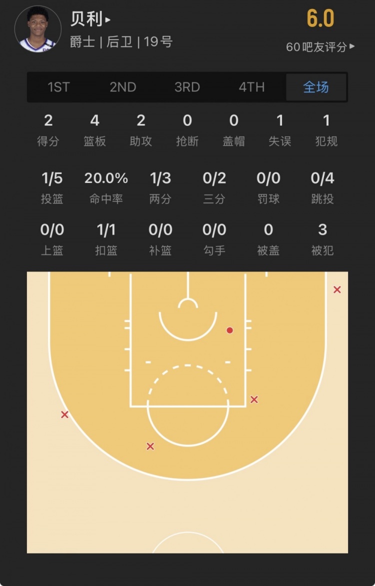 爵士5号秀 埃斯-贝利 登场20.2分钟