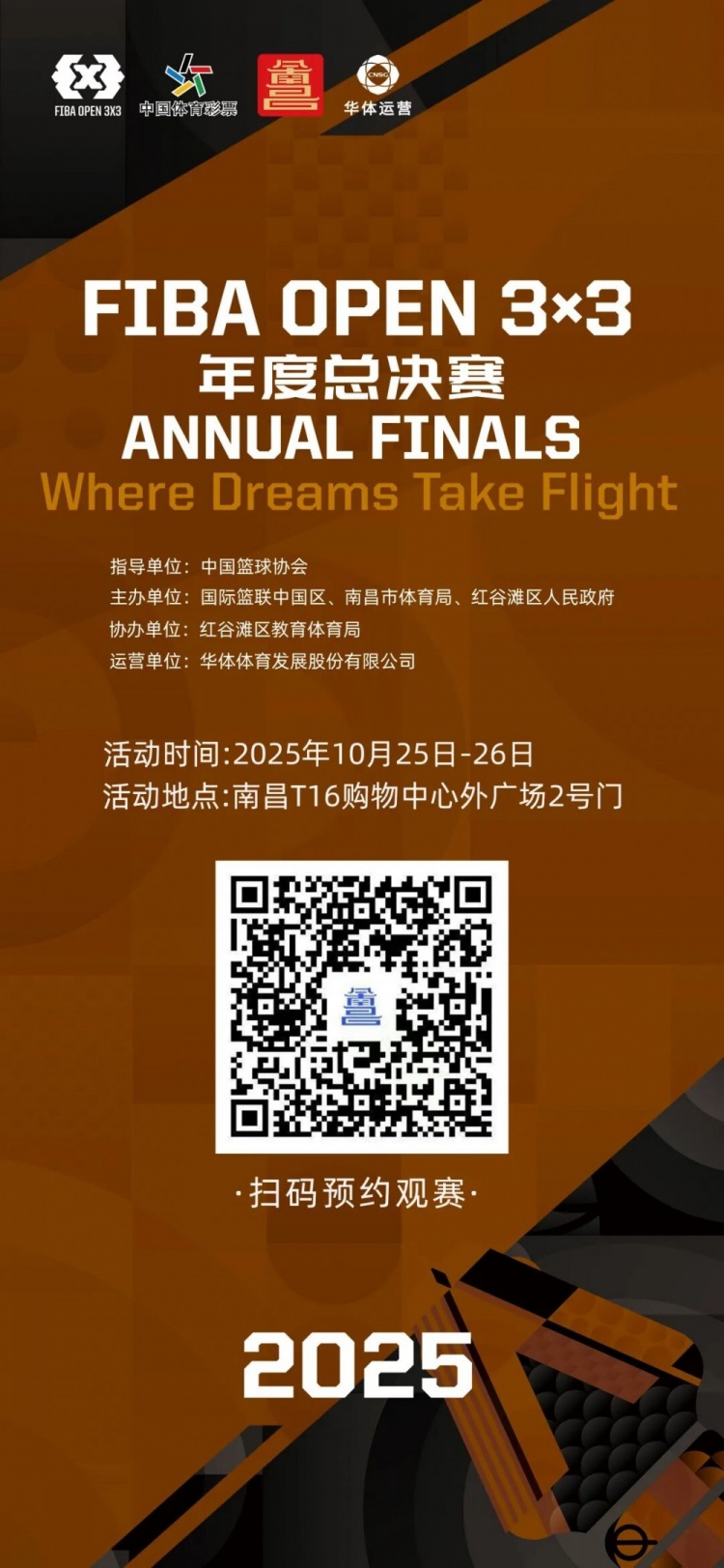 2025年10月25日-26日,南昌T16购物中心广场即将迎来一场属于全民的篮球狂欢——2025 FIBA Open 3x3年度总决赛!经过全国百城激战,32支最强队伍集结滕王阁畔,争夺全国冠军荣耀与参与更高级别的全球赛事的资格!本届赛事融合顶尖竞技、城市地标与街头文化,邀你共同见证!以下六大亮点,带你一睹为快! 亮点一 百城征战,32强集结南昌