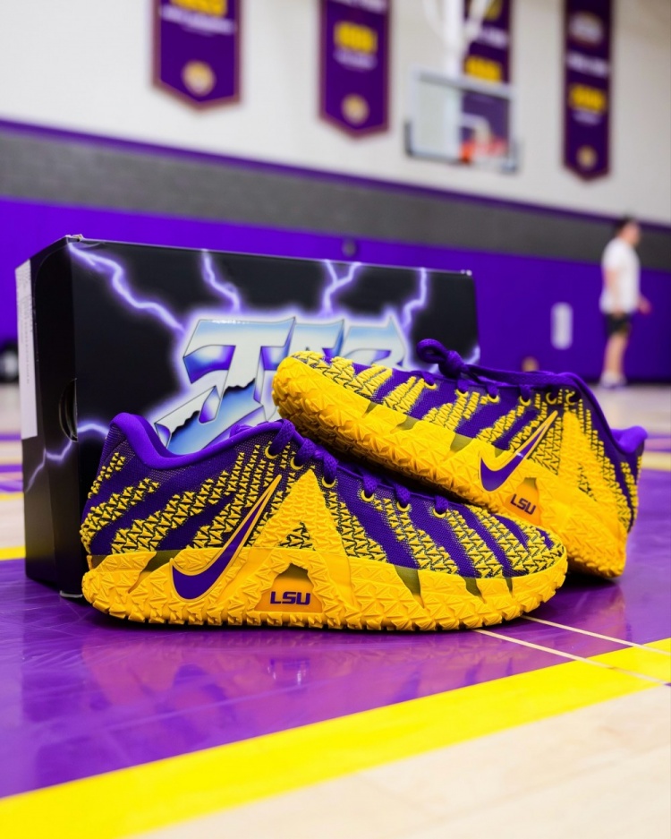 足球比分网10月23日讯 路易斯安那州立大学校队更新社媒,晒出了赞助商为他们设计的专属球队配色的莫兰特签名鞋Ja 3 “LSU” PE。 LSU最知名NBA校友是奥尼尔,而刚失业的本-西蒙斯也来自这所学校。现役球员中,纳兹-里德、卡姆-托马斯、塔里-伊森、里斯、坦普尔、特伦顿-沃特福德这6位球员也来自此校。