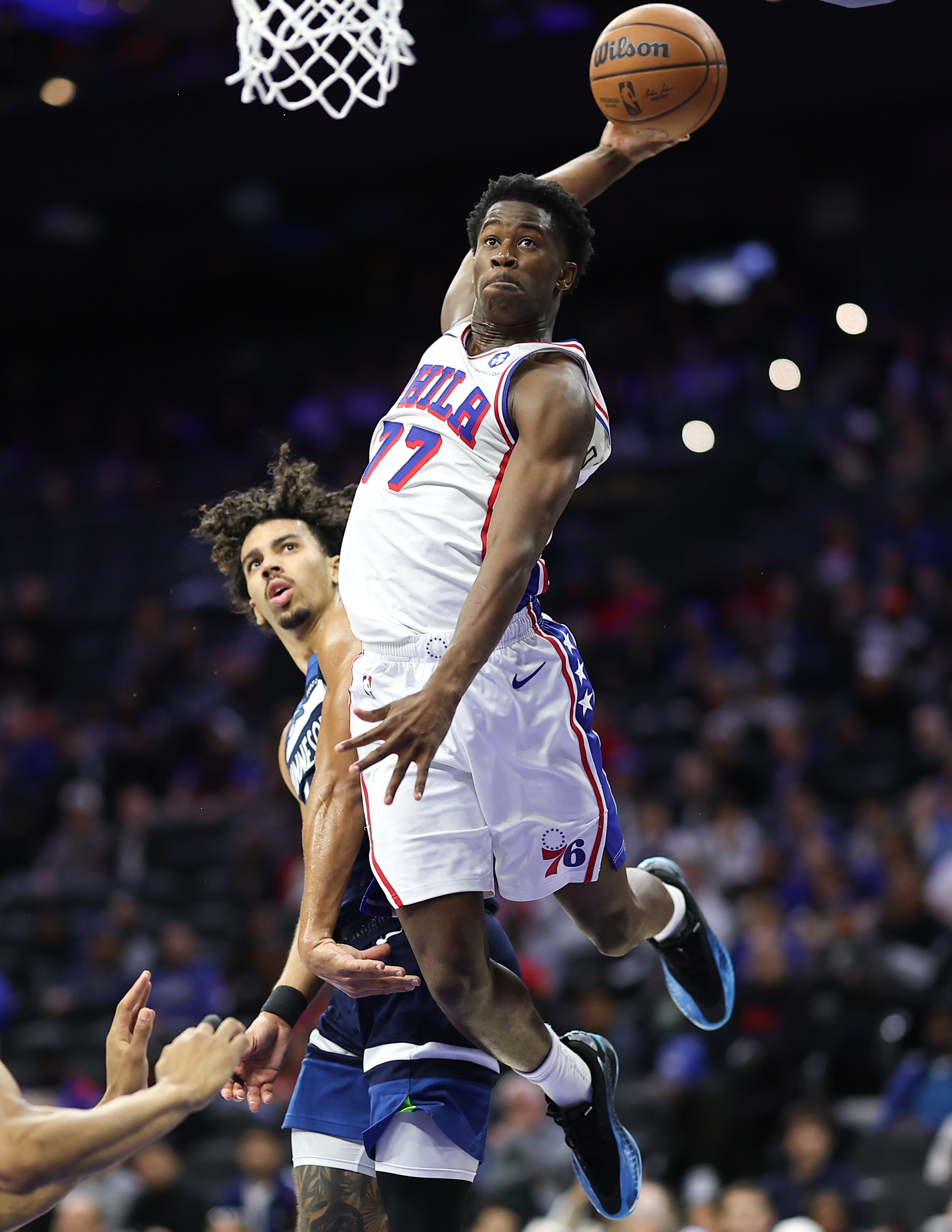 这位身高6英尺4英寸(约合1.93米)的双能卫砍下了34分,帮助76人在赛季揭幕战中以117-116战胜了他们的宿敌。这一表现让他得以比肩名人堂成员威尔特-张伯伦和未来的名人堂成员勒布朗-詹姆斯,跻身精英行列。 这是NBA历史上得分第三高的首秀,仅次于张伯伦在1959年10月24日得到的43分和弗兰克-塞尔维在1954年11月30日得到的35分。埃奇库姆在第一节得到的14分超过了詹姆斯在2003年10月29日得到的12分,创造了NBA首秀首节的得分纪录。 “从球队的角度来看,我们赢了球,这才是最重要的,”埃奇库姆微笑着谈到自己的表现时说道,“就像我说的,该来的总会来。归根结底,这还是篮球,我一直都是这么说的。我只是努力不去想太多。”