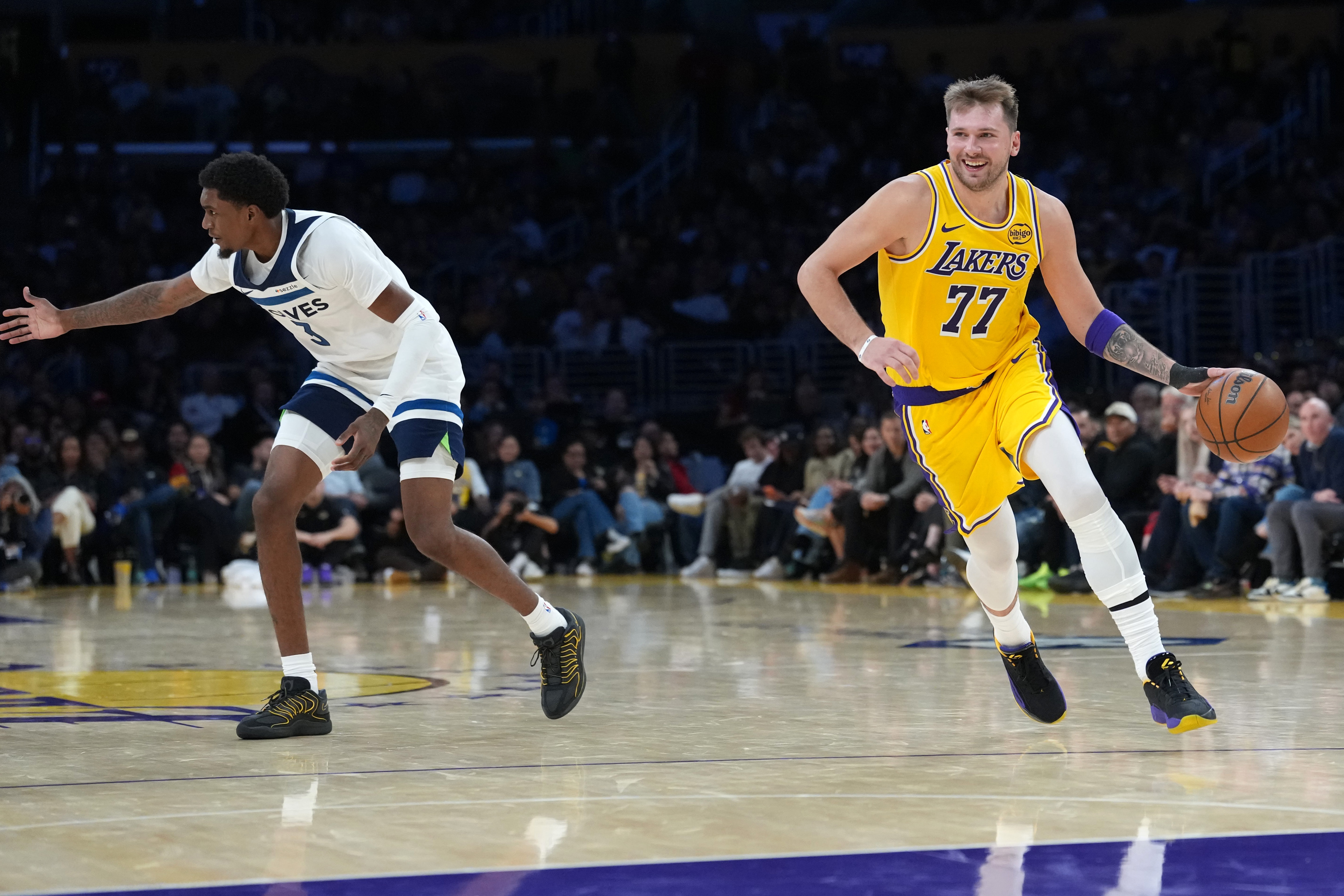 森林狼对卢卡火热的手感并不陌生。他们不是第一支在他不可思议的投篮能力下吃亏的球队。这场比赛失控的关键在于,森林狼无法阻止湖人队的其他球员。奥斯汀-里夫斯15投9中得到25分。八村塁13投10中得到23分。 部分原因在于湖人出色的投篮表现。在漫长的NBA赛季中,总会有这样的夜晚。但在全国直播中对阵一支焦点球队时,这种强度不足的表现是令人失望的。 “老实说,这只是努力程度的问题,”迪文岑佐说道,“作为一个集体,我们知道我们没有付出努力。一支被我们从季后赛淘汰的球队会带着更强的渴望来比赛。他们想把你的头拧下来。我认为我们今晚在拼劲上没能跟上对手。” 森林狼在第三节曾有一线希望,当时东契奇因为身背4次犯规,在最后4分钟下场休息。当时湖人领先9分,但面对这套没有卢卡的阵容,森林狼在防守端依然无计可施,进入第四节时落后14分。