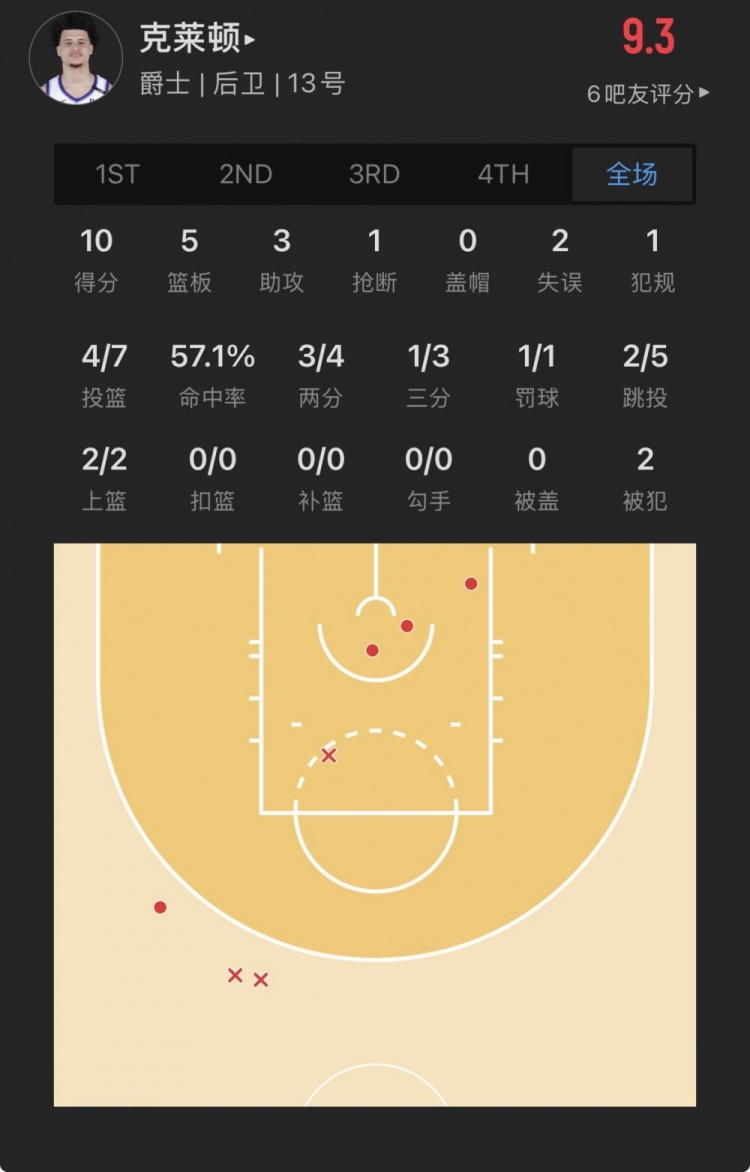 爵士18号秀 小沃尔特-克莱顿 登场20.3分钟