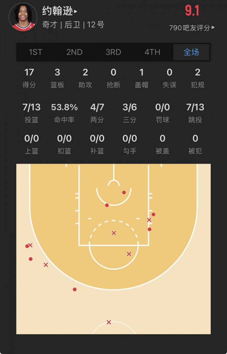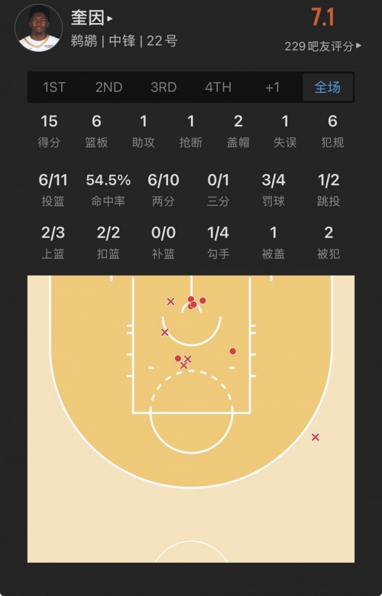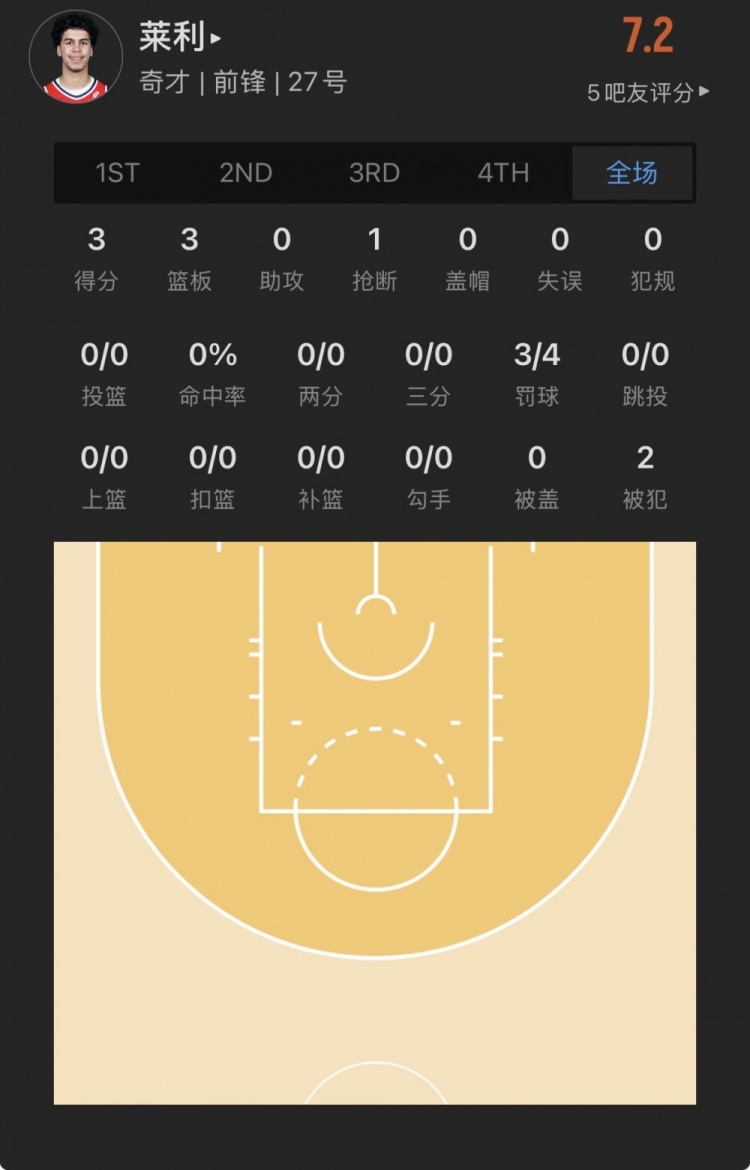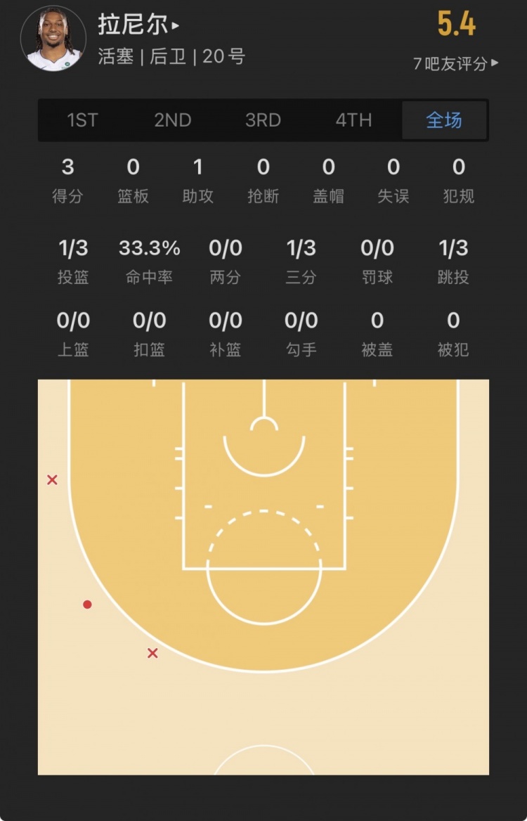 活塞37号秀 查兹-拉尼尔 登场11.5分钟