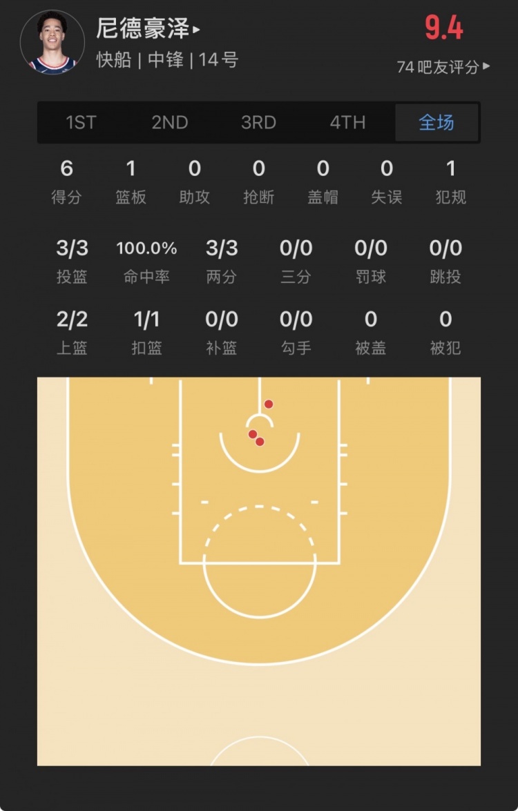 快船30号秀 亚尼克-科南-尼德豪泽 登场4.8分钟