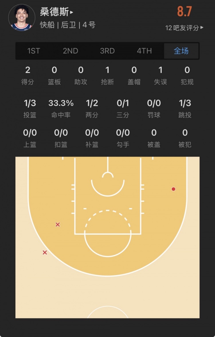 快船50号秀 科比-桑德斯 登场4.8分钟