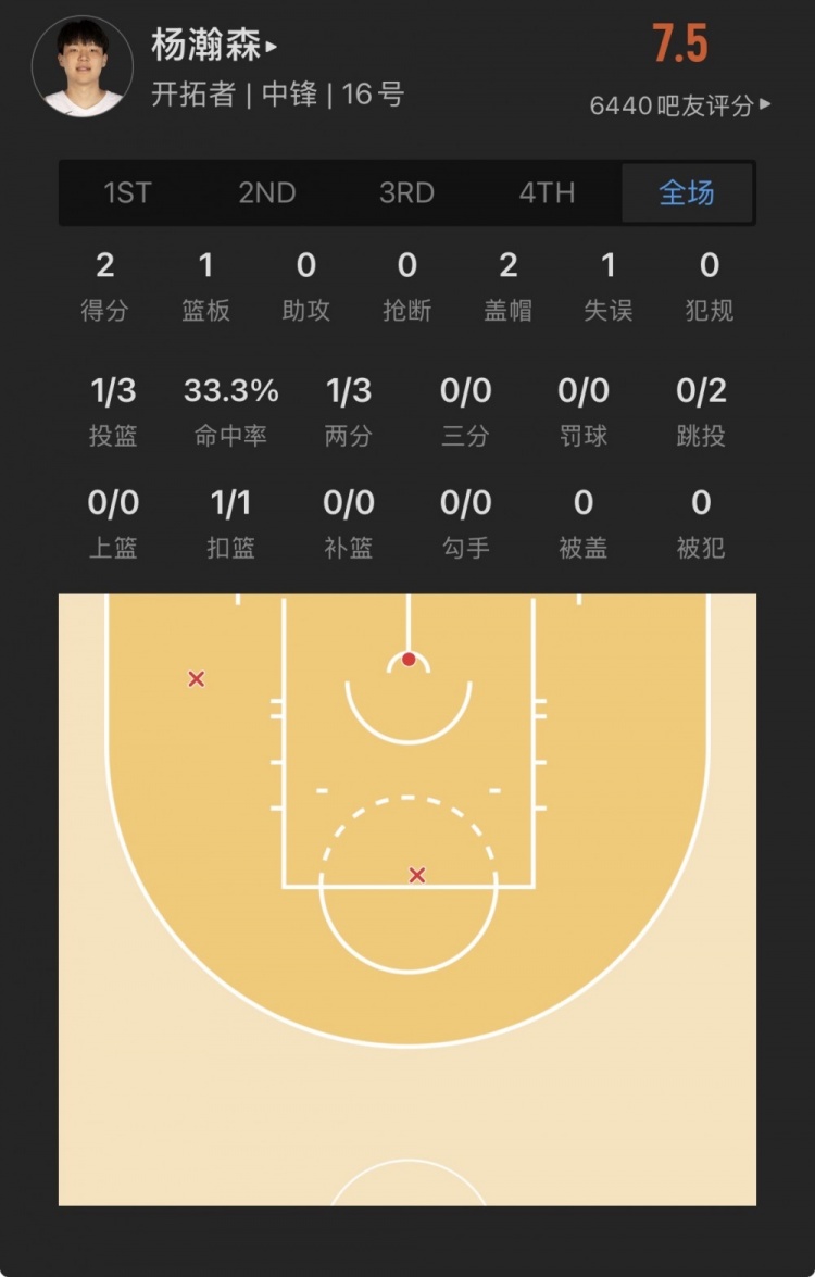 开拓者16号秀 杨瀚森 登场7.2分钟