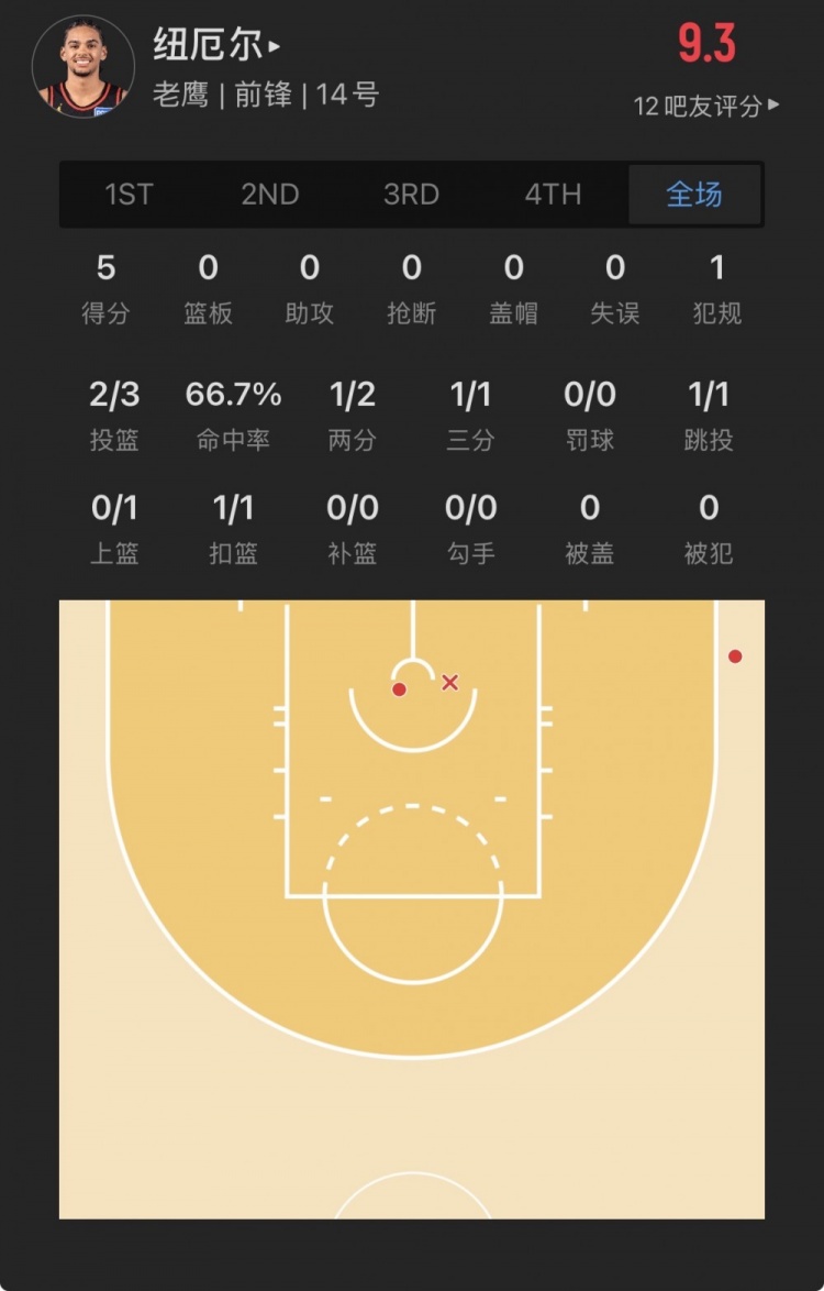 老鹰23号秀 阿萨-纽厄尔 登场3.8分钟