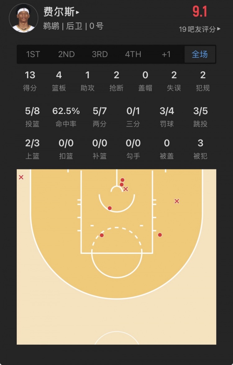 鹈鹕7号秀 杰里迈亚-费尔斯 登场28.7分钟