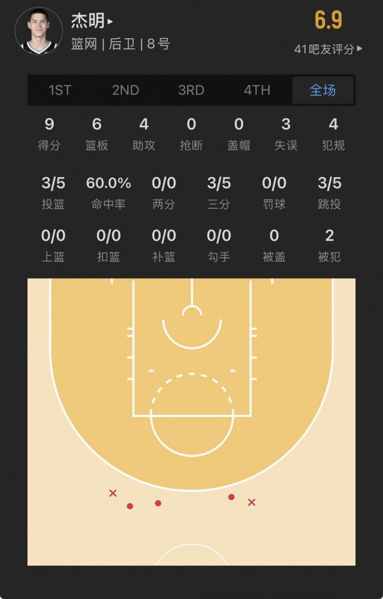 篮网8号秀 叶戈尔-杰明 登场24.6分钟