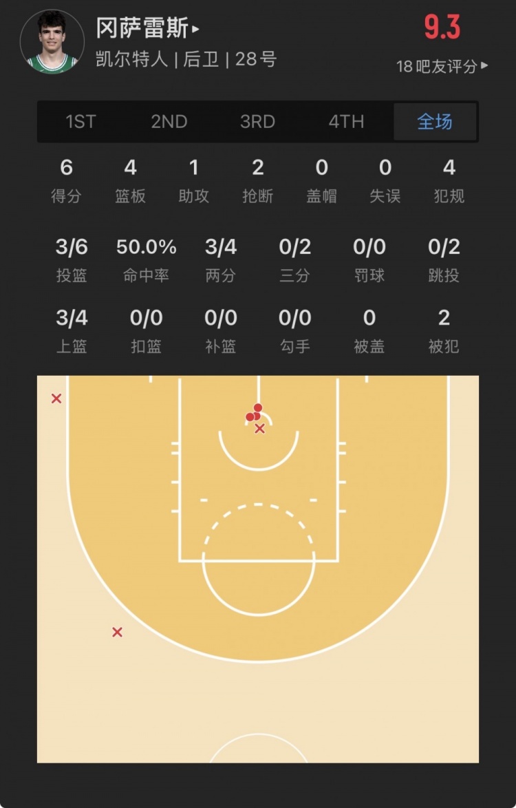 凯尔特人28号秀 乌戈-冈萨雷斯 登场22.6分钟