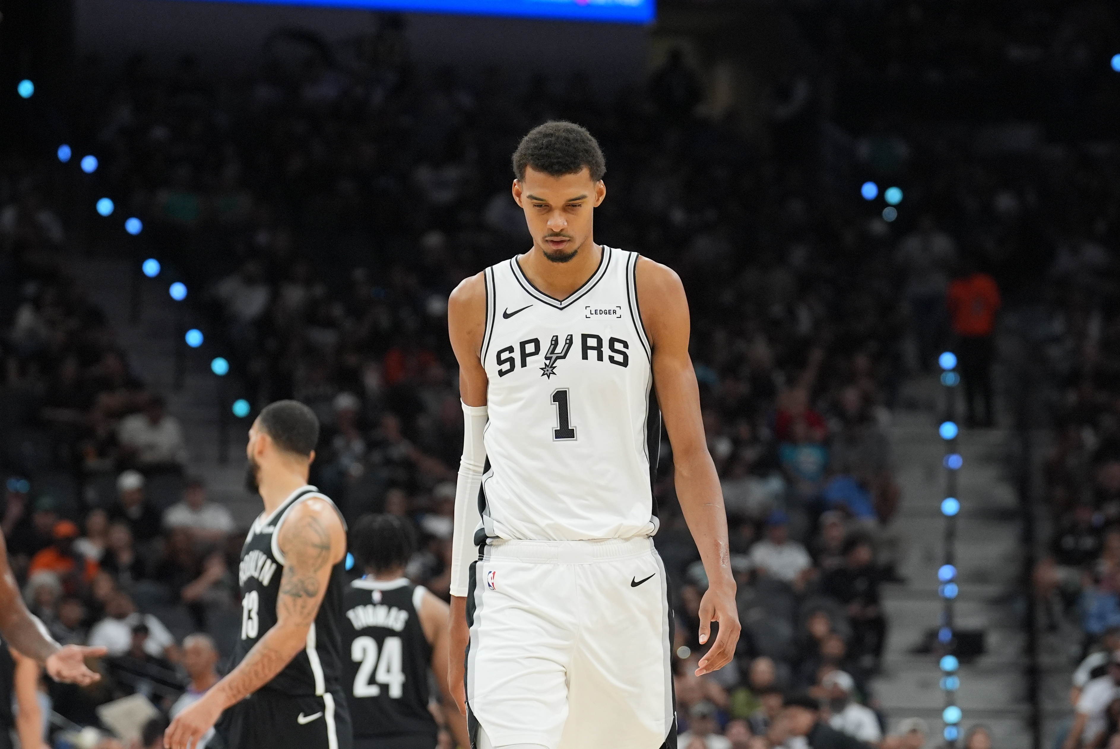 足球比分网10月31日讯 马刺以107-101击败热火,取得五连胜。赛后,马刺主帅米奇-约翰逊接受媒体采访。 谈及文班亚马扭转比赛局势,米奇-约翰逊表示:“我认为他下半场在防守端的存在感,以及他所覆盖的防守范围,都比上半场更具决定性。” 此役,文班亚马出战40分钟,投篮23中10,三分球5中1,罚球8中6,砍下27分18篮板6助攻1抢断5盖帽的数据。 |