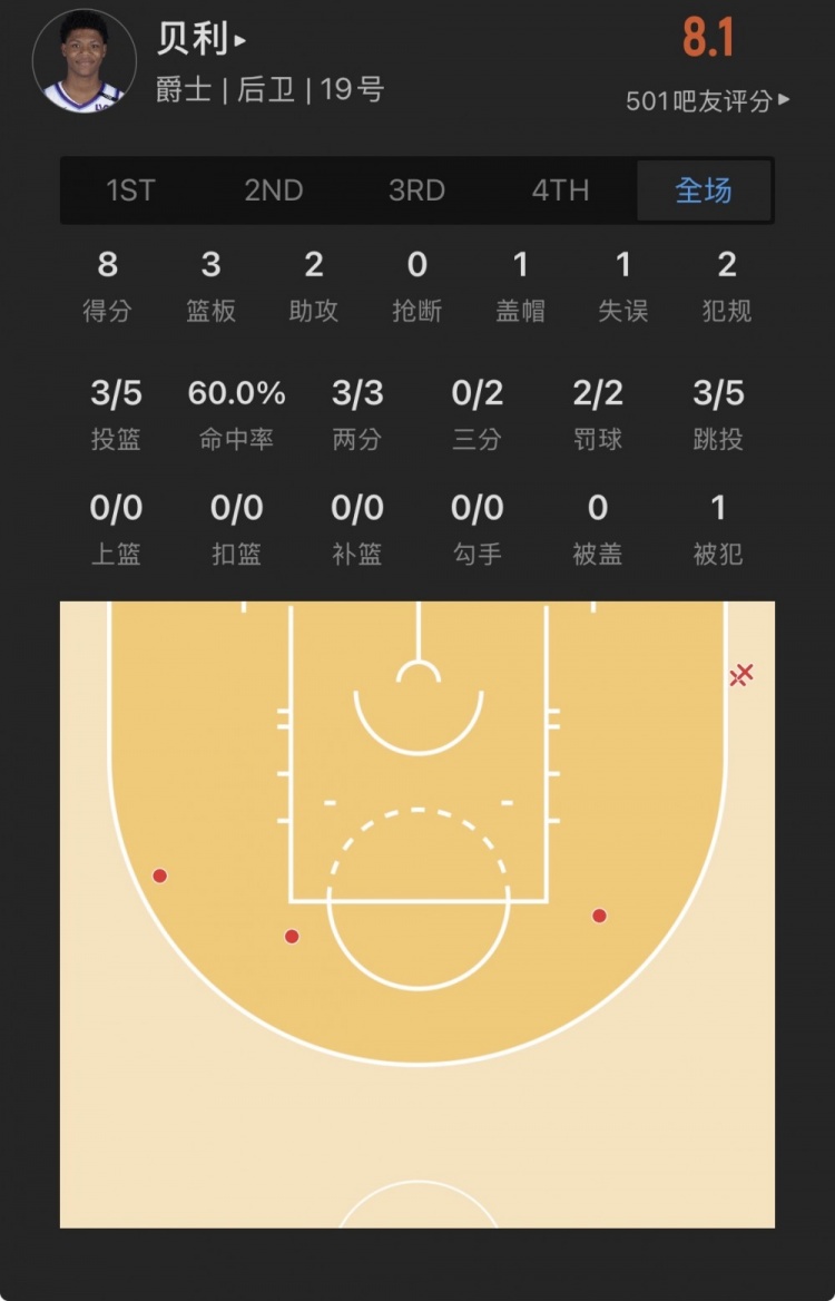 爵士5号秀 埃斯-贝利 登场15.4分钟