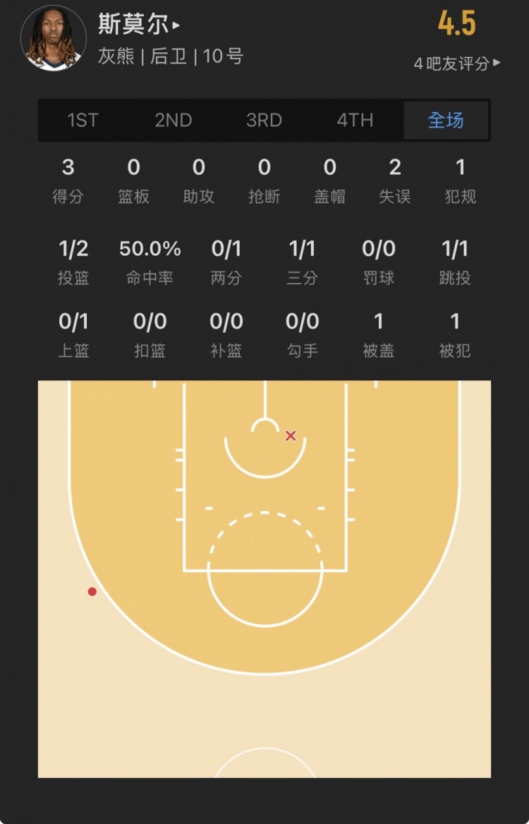 灰熊48号秀 贾冯-斯莫尔 登场10.4分钟