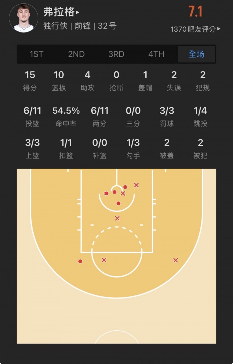 独行侠状元秀 库珀-弗拉格 登场35.1分钟