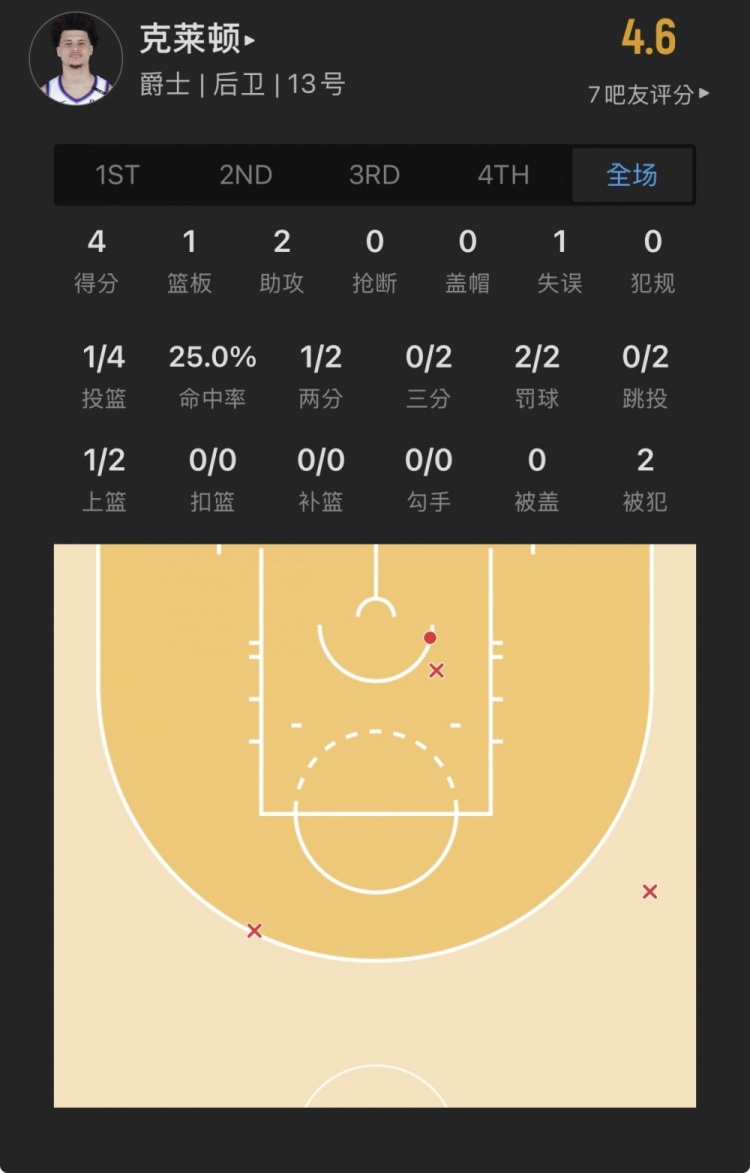 爵士18号秀 小沃尔特-克莱顿 登场16.0分钟